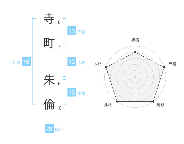 寺町 朱倫さんを姓名の画数から五運を鑑定