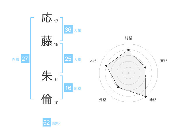 応藤 朱倫さんを姓名の画数から五運を鑑定