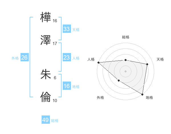 樺澤 朱倫さんの天格は33画の4点!