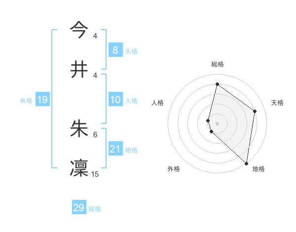 今井 朱凜さんを姓名の画数から五運を鑑定