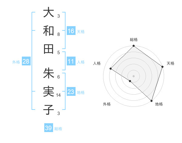 大和田 朱実子さんを姓名の画数から五運を鑑定