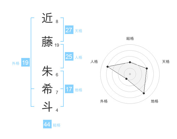 近藤 朱希斗さんの総格は44画の2点