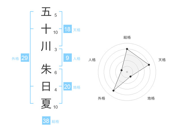 五十川 朱日夏さんを姓名の画数から五運を鑑定