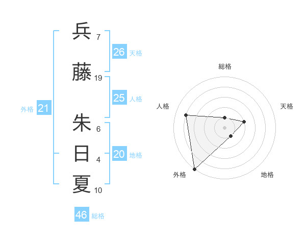 兵藤 朱日夏さんを姓名の画数から五運を鑑定