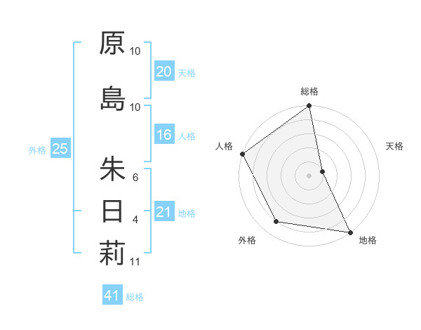 原島 朱日莉さんを姓名の画数から五運を鑑定