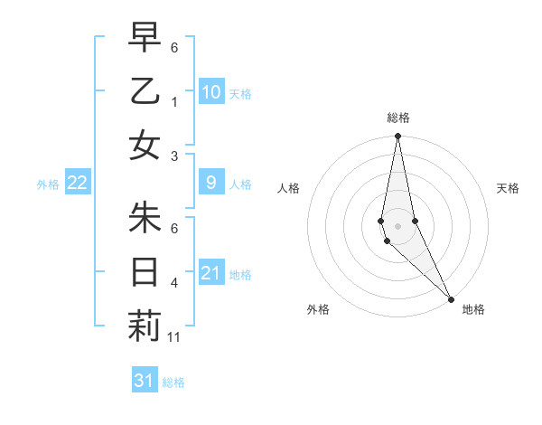 早乙女 朱日莉さんを姓名の画数から五運を鑑定