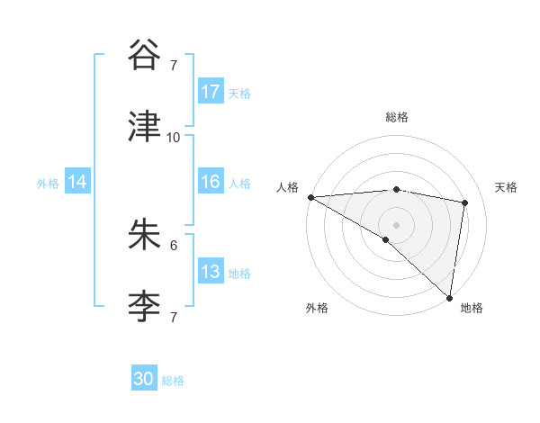 谷津 朱李さんを姓名の画数から五運を鑑定