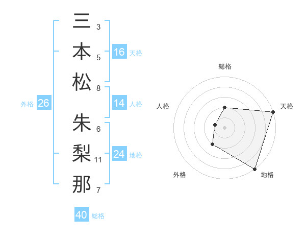 三本松 朱梨那さんを姓名の画数から五運を鑑定