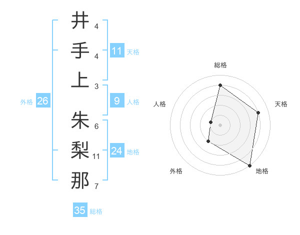 井手上 朱梨那さんの総格は35画の4点!