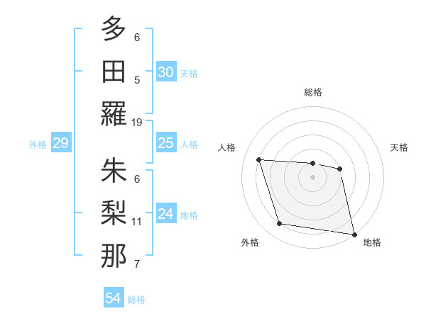 多田羅 朱梨那さんを姓名の画数から五運を鑑定