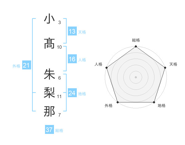 小髙 朱梨那さんの天格は13画の5点!
