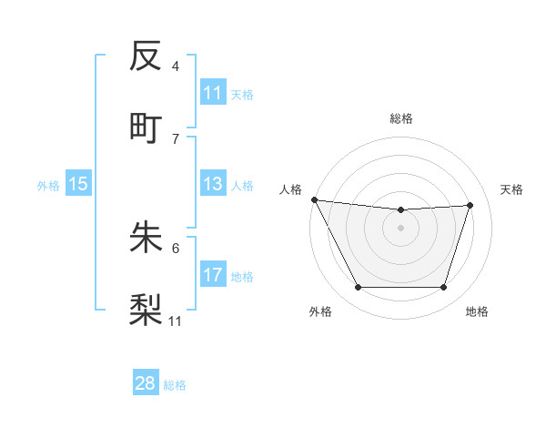 反町 朱梨さんを姓名の画数から五運を鑑定