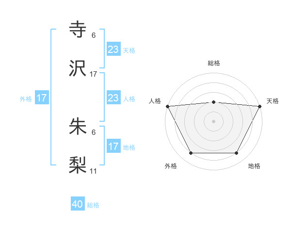 寺沢 朱梨さんの天格は23画の5点!