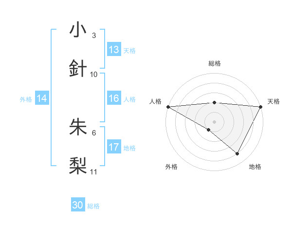 小針 朱梨さんを姓名の画数から五運を鑑定