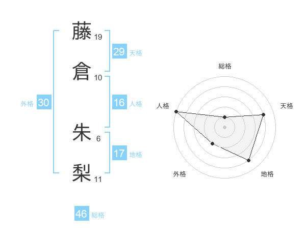 藤倉 朱梨さんを姓名の画数から五運を鑑定