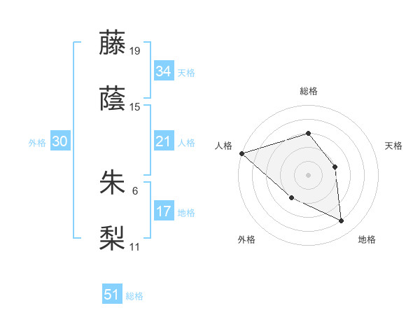 藤蔭 朱梨さんを姓名の画数から五運を鑑定