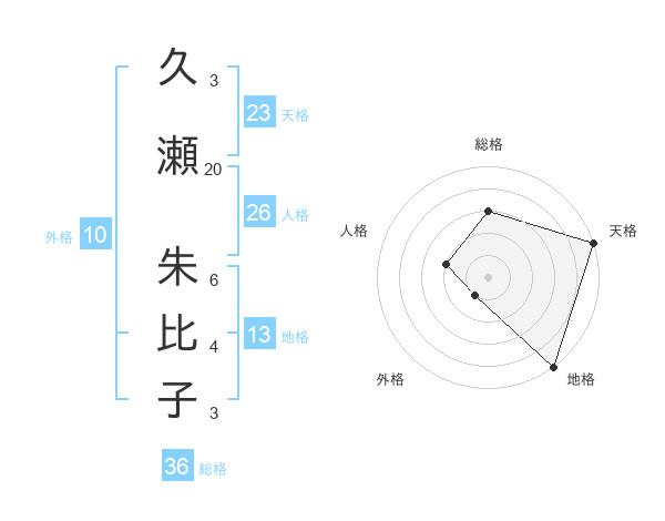 久瀬 朱比子さんの天格は23画の5点!