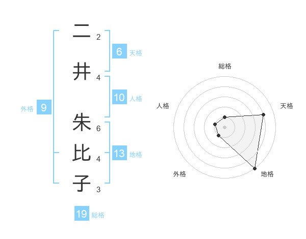 二井 朱比子さんの総格は19画の1点!