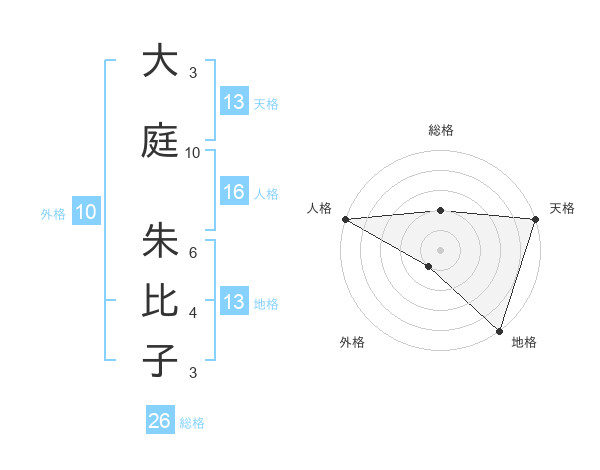 大庭 朱比子さんを姓名の画数から五運を鑑定