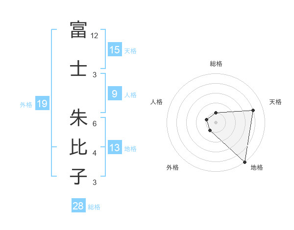 富士 朱比子さんを姓名の画数から五運を鑑定