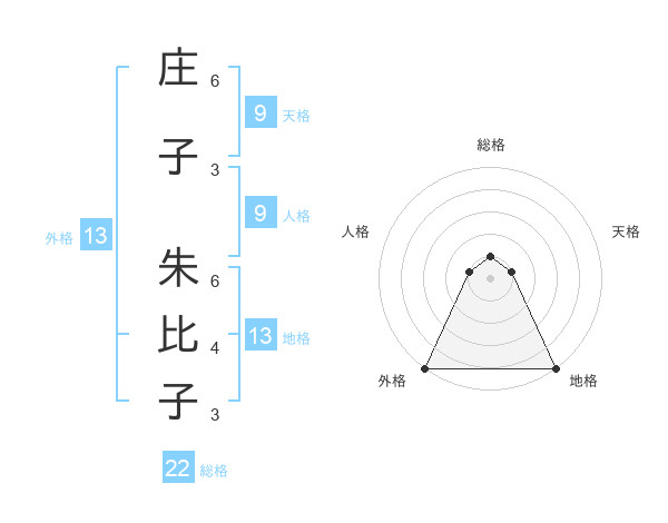 庄子 朱比子さんを姓名の画数から五運を鑑定