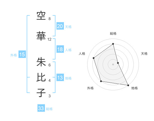 空華 朱比子さんの天格は20画の1点!