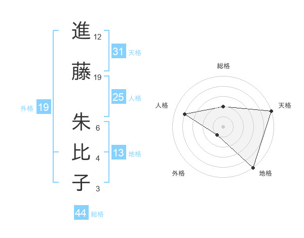 進藤 朱比子さんを姓名の画数から五運を鑑定