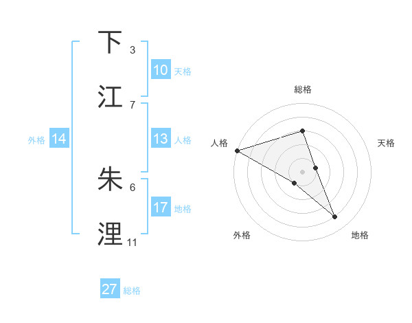 下江 朱浬さんの総格は27画の3点!