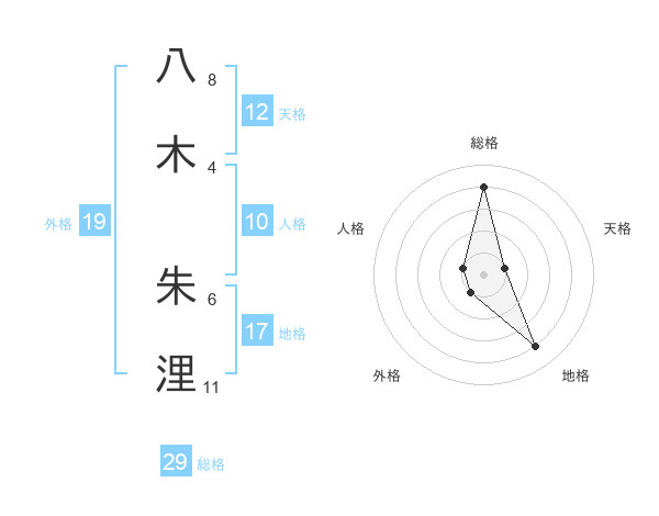 八木 朱浬さんの総格は29画の4点!