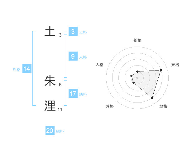 土 朱浬さんの総格は20画の1点!