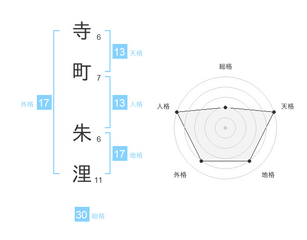 寺町 朱浬さんの天格は13画の5点!
