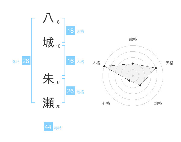 八城 朱瀬さんを姓名の画数から五運を鑑定