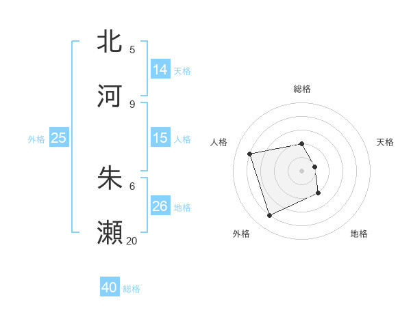 北河 朱瀬さんの外格は25画の4点!