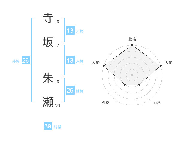 寺坂 朱瀬さんを姓名の画数から五運を鑑定
