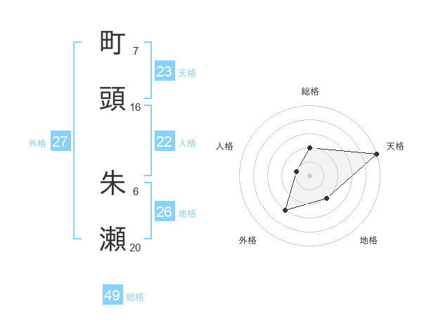 町頭 朱瀬さんの総格は49画の2点!