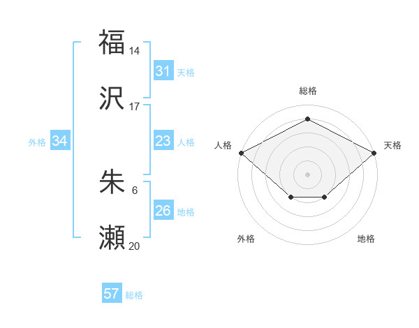 福沢 朱瀬さんの天格は31画の5点!