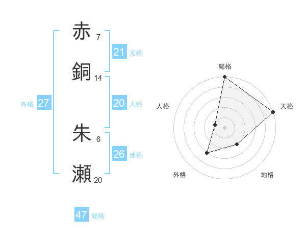 赤銅 朱瀬さんを姓名の画数から五運を鑑定