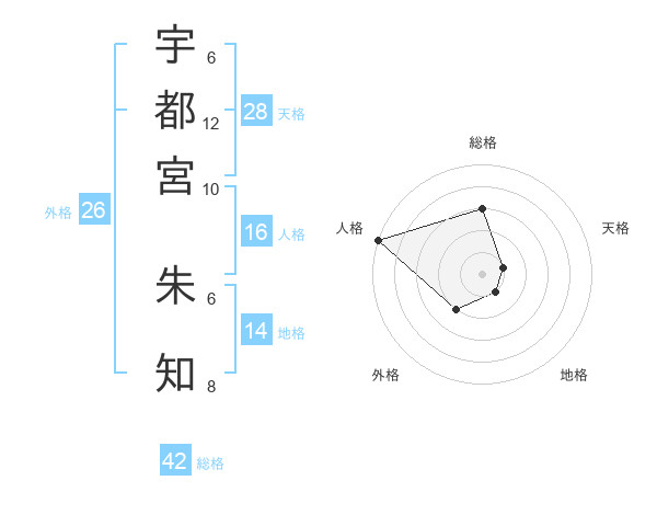 宇都宮 朱知さんを姓名の画数から五運を鑑定