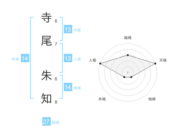 寺尾 朱知さんの天格は13画の5点!