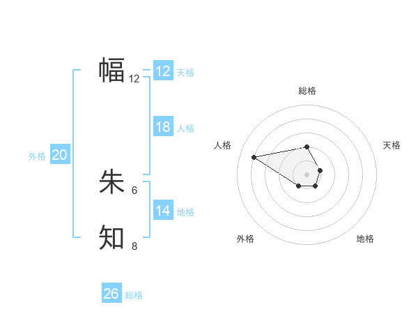 幅 朱知さんの総格は26画の2点!