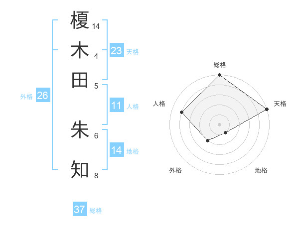 榎木田 朱知さんを姓名の画数から五運を鑑定