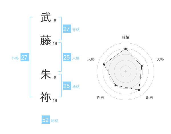 武藤 朱祢さんを姓名の画数から五運を鑑定
