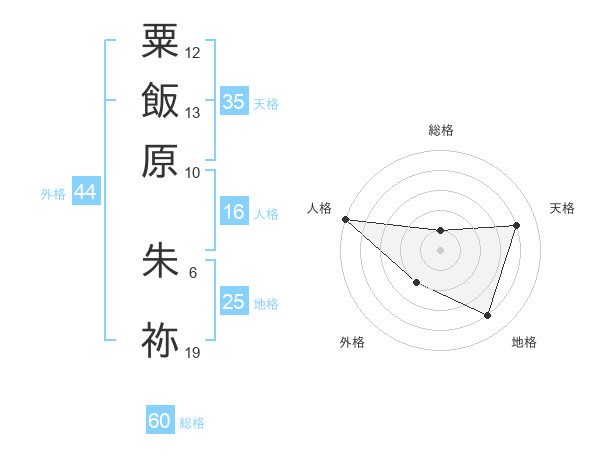 粟飯原 朱祢さんを姓名の画数から五運を鑑定