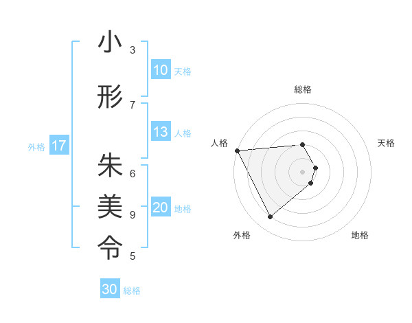 小形 朱美令さんを姓名の画数から五運を鑑定