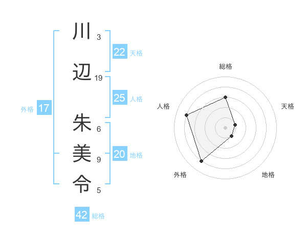 川辺 朱美令さんを姓名の画数から五運を鑑定