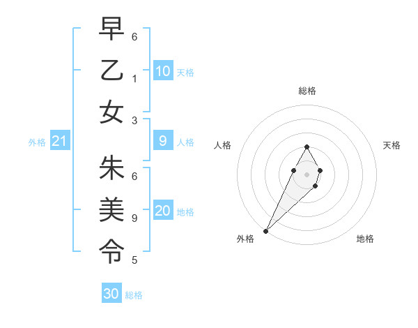 早乙女 朱美令さんの総格は30画の2点!