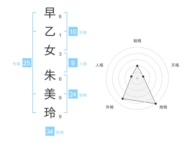 早乙女 朱美玲さんを姓名の画数から五運を鑑定