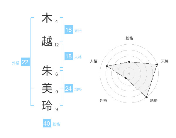 木越 朱美玲さんの天格は16画の5点!