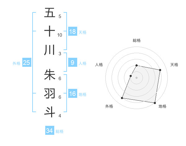 五十川 朱羽斗さんを姓名の画数から五運を鑑定
