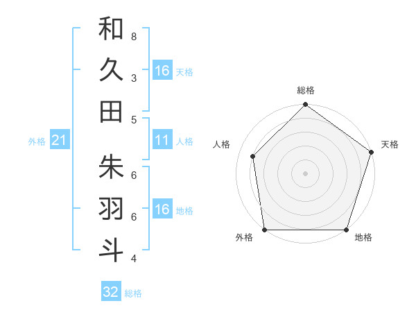 和久田 朱羽斗さんを姓名の画数から五運を鑑定